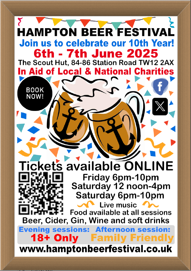 We are pleased to announce that the annual Hampton Beer Festival will take place on the 6th and 7th of June 2025.